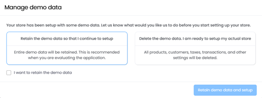You have the option to choose whether you want to retain the Demo Data or purge the Demo Data. This Demo Data is loaded in the application based on the business vertical selected that you have selected at the time of tenant registration.