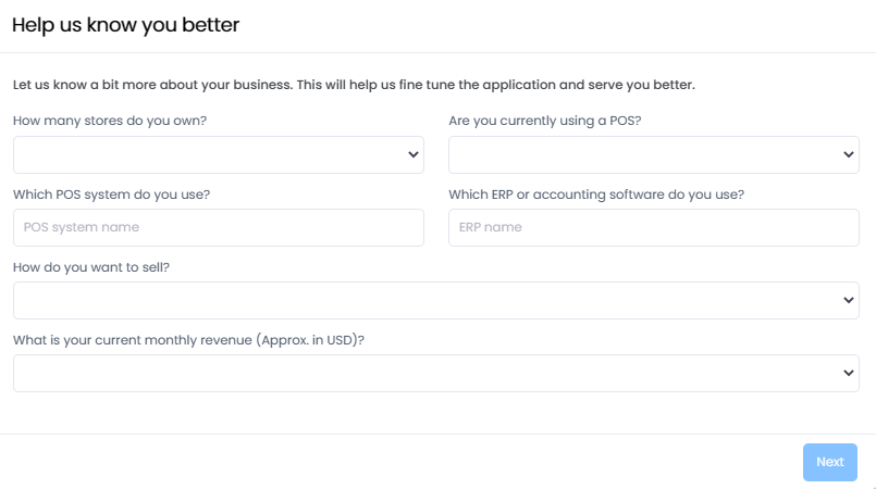You must answer these questions pertaining to your retail business to help us know you and your business environment better. These questions are: