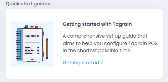 Each Tile corresponds to a category mapped to a User Guide. Since the User Guides are split category wise it makes it easier for you to find the relevant help to configure Tagrain POS in the shortest possible time.