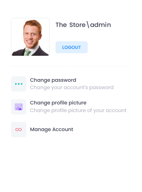 The Admin section, which can be accessed by clicking the Admin profile picture, allows you to change your tenant’s password, change your admin’s profile picture, and manage your Tagrain account.