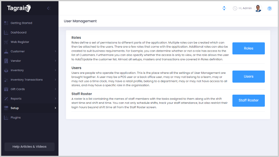 HOME > SETUP > USER MANAGEMENT > STAFF ROSTER