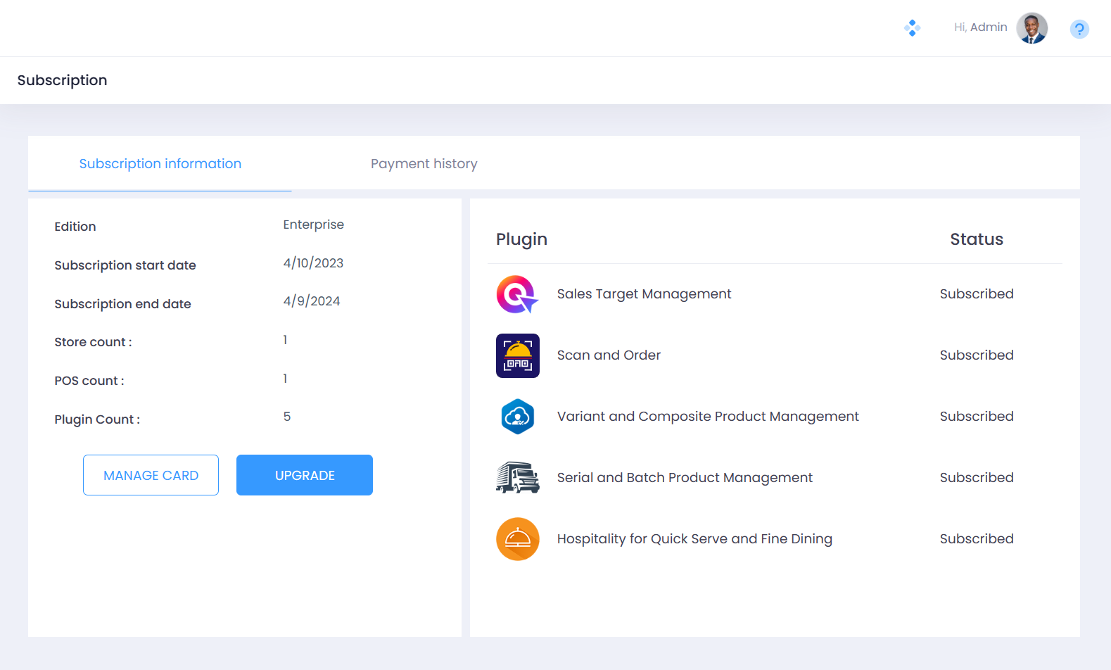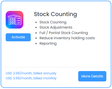 You can activate the Stock Counting Plugin from the Purchase Subscription page. You can approach this page via the Plugins Sereen or the Manage Accounts Section.