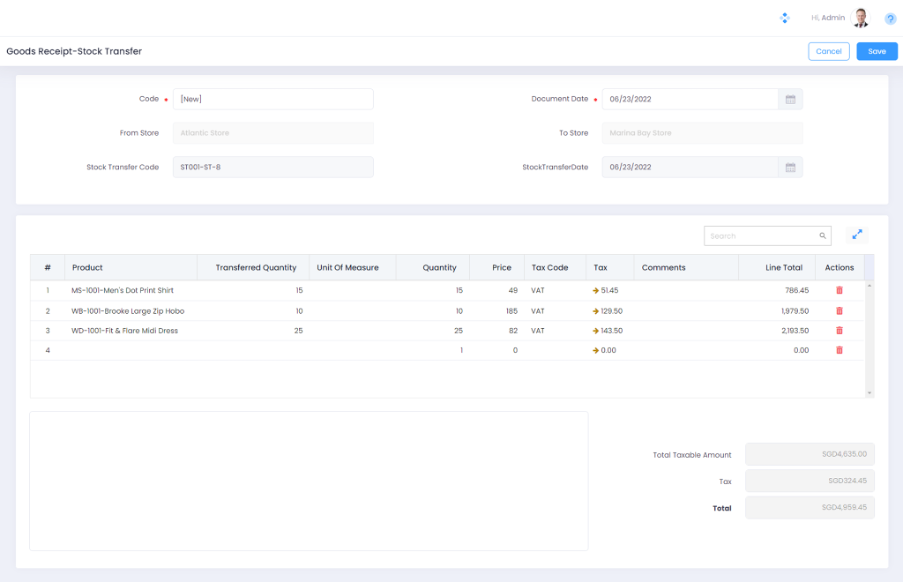 The fields in the Stock Transfer Receipt Screen are pre-filled based on the Stock Transfer Shipment raised. You just need to adjust the quantity that you are receiving now and click the save button to add the details in the Stock Transfer Receipt. You can print this Stock Transfer Receipt for your records.