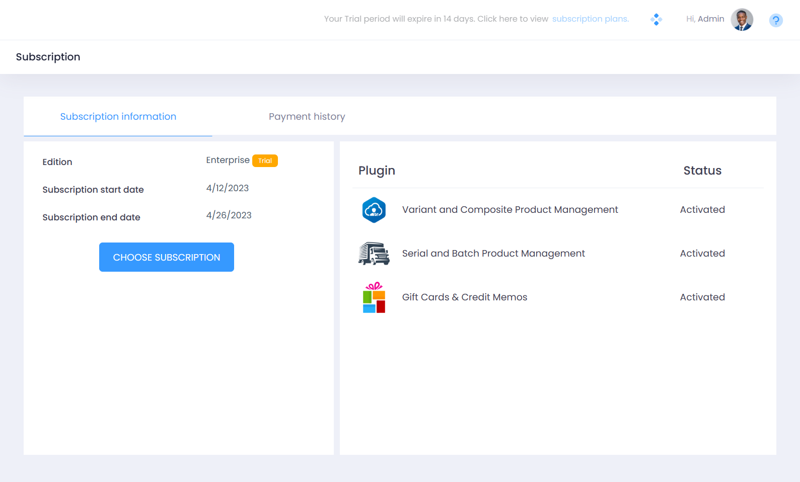 You also get to see a summary of your subscription under the “Subscription Information” section. It displays the