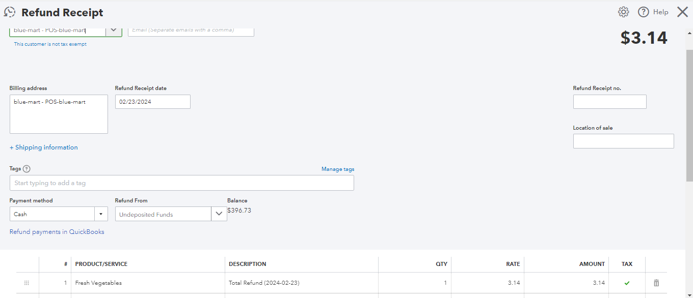 Tax code with the name Exempt (with a rate 0 %) must exist in QuickBooks Online for Surcharge and Gift card transaction Integration.