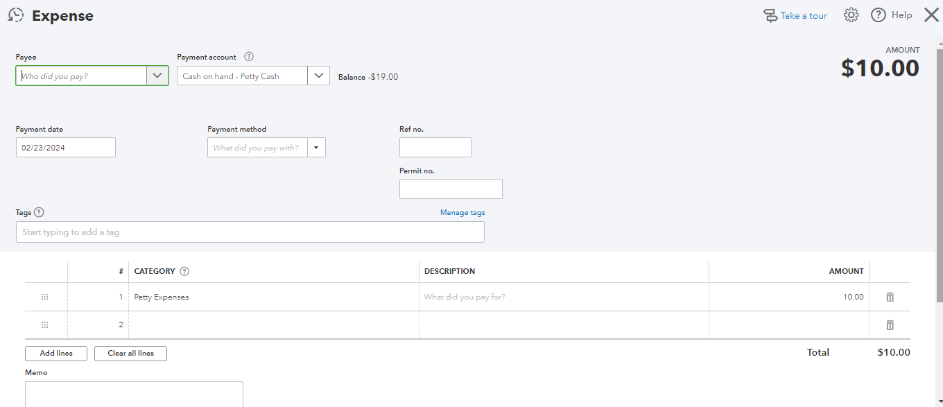 Petty cash expenses from Tagrain automatically sync to QuickBooks Online on register closure.