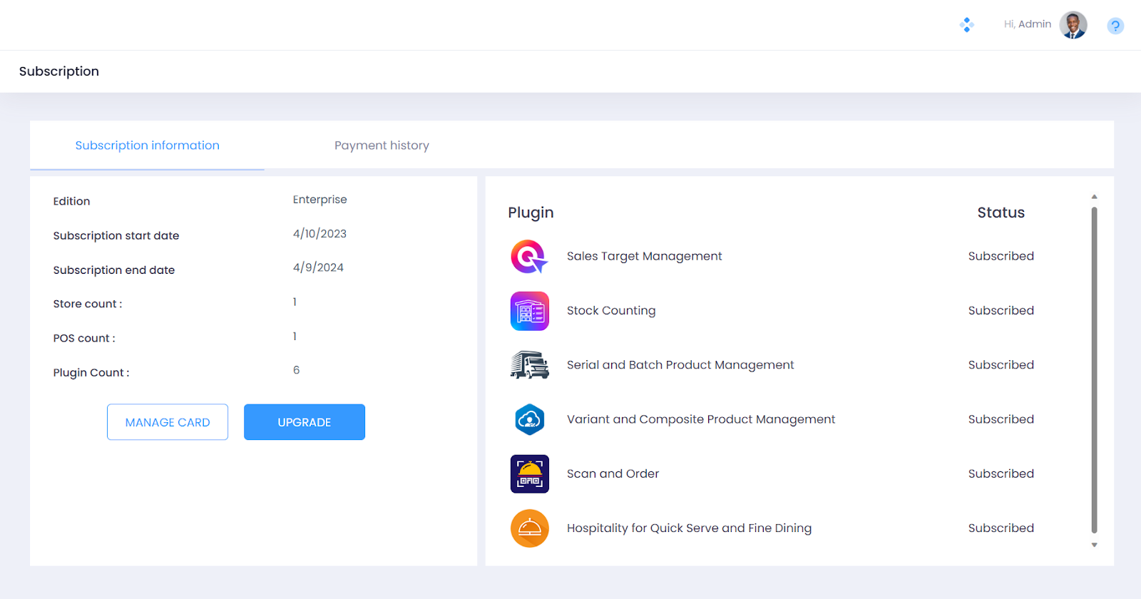 The steps to activate the Tagrain Pointy Integration Plugin is no different than the other Plugins. The Plugin can be activated from the Purchase Subscription screen. There are 2 ways to approach this screen -