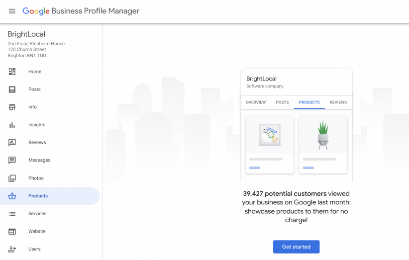 You can log into your Google Business Profile Manager and navigate to the ‘Products’ tab on the left. Here, you should see a promo card for Pointy.