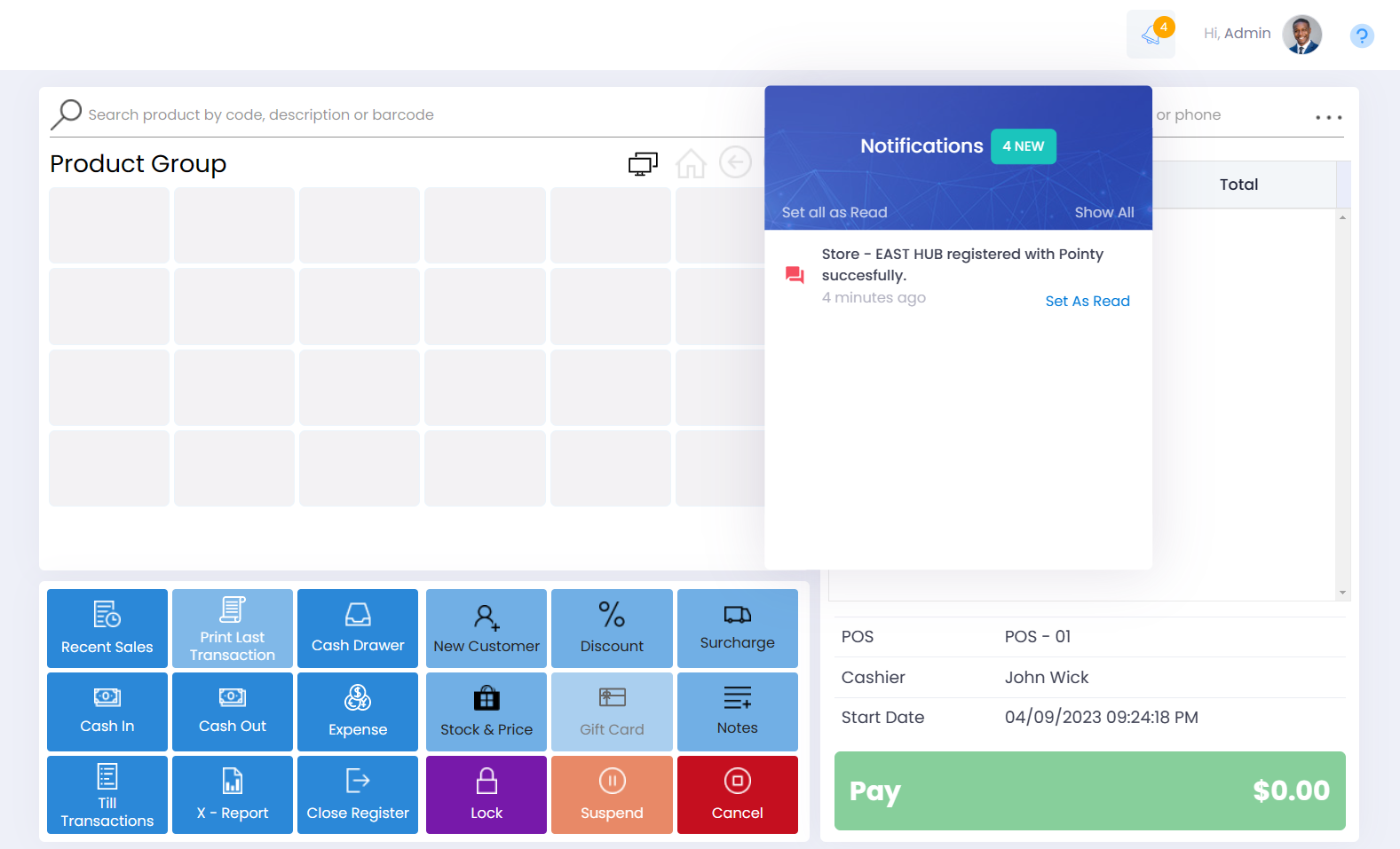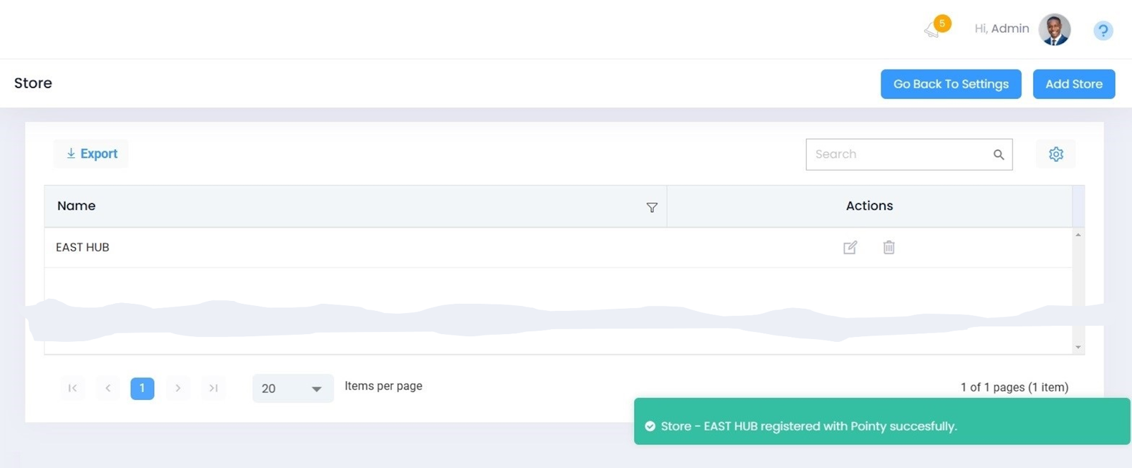 A notification popup will confirm the Store registration was successful. This can be seen at the bottom of the page.