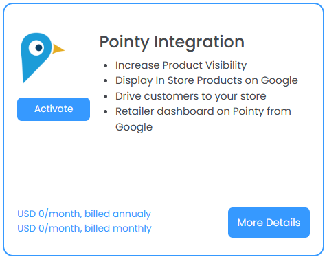 To be able to benefit from the Pointy’s Virtual Store, you must subscribe and activate the Tagrain Pointy Integration Plugin.