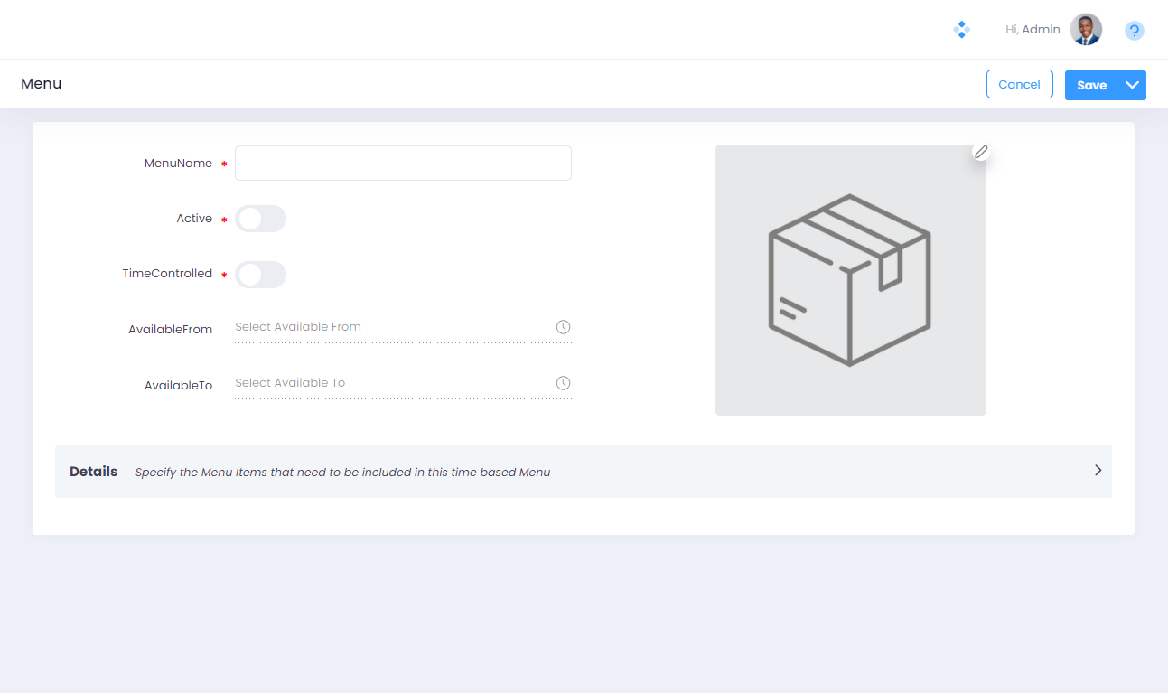 Step 6. Specify an “Image” for the Menu. Click on the “Pencil” symbol to upload the image. This would help you identify the menu with ease on the Web Register or tablets