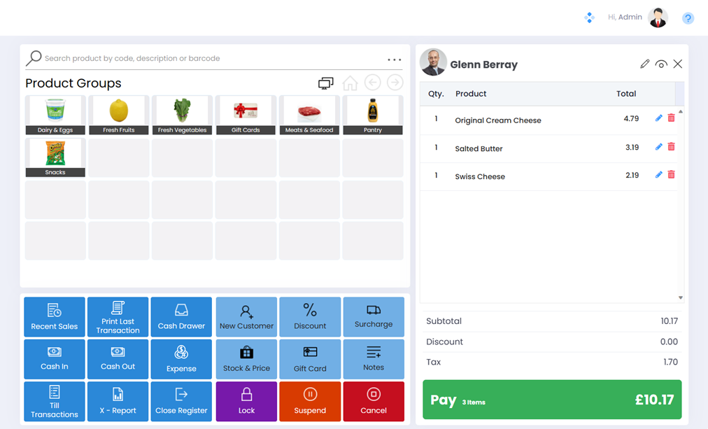 Scan a few products to the transaction grid and click the Pay button to reach the Payment screen.