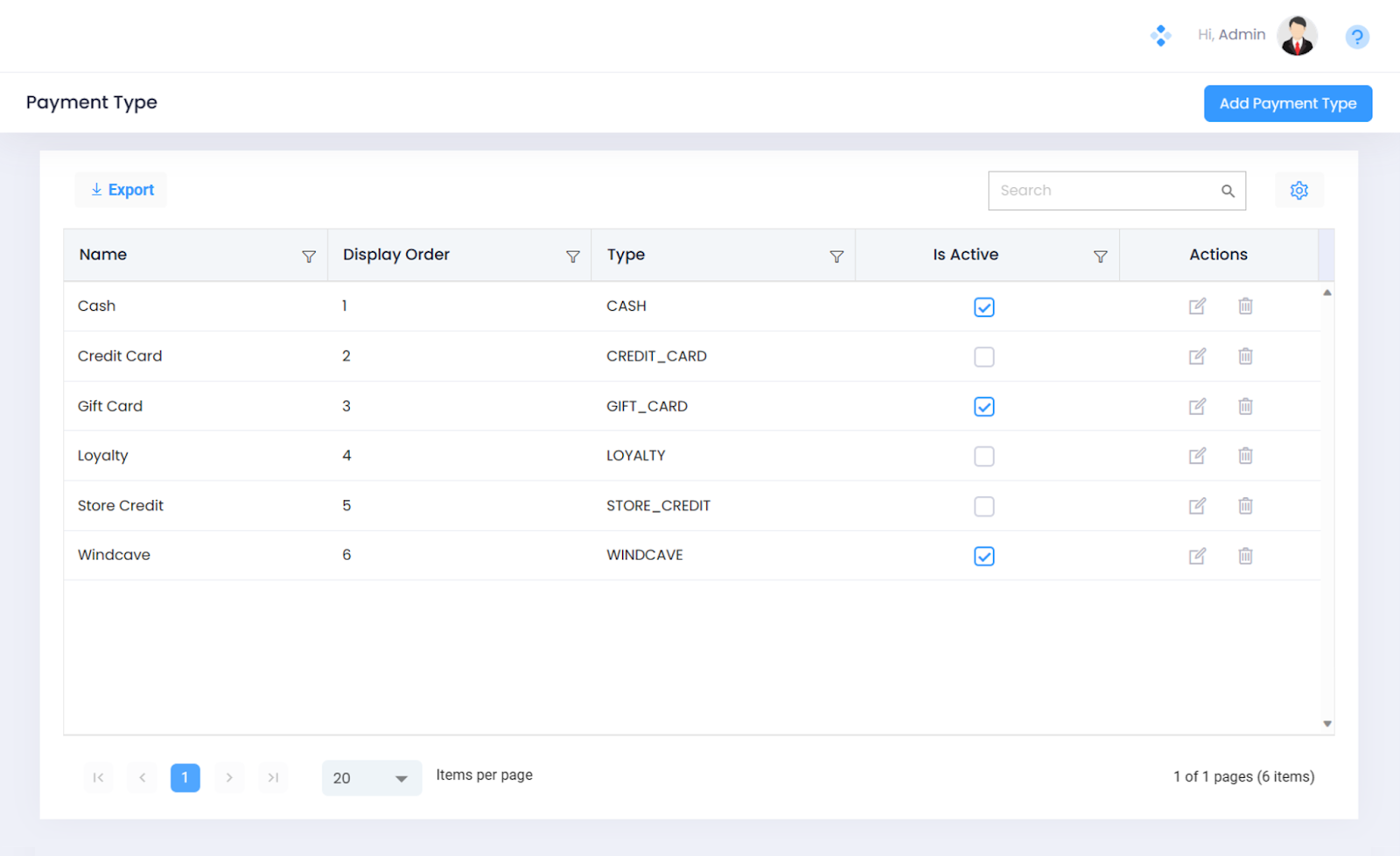 Upon successful handshake, Windcave is added as a Payment Type and would start reflecting in the Payment List View Screen.