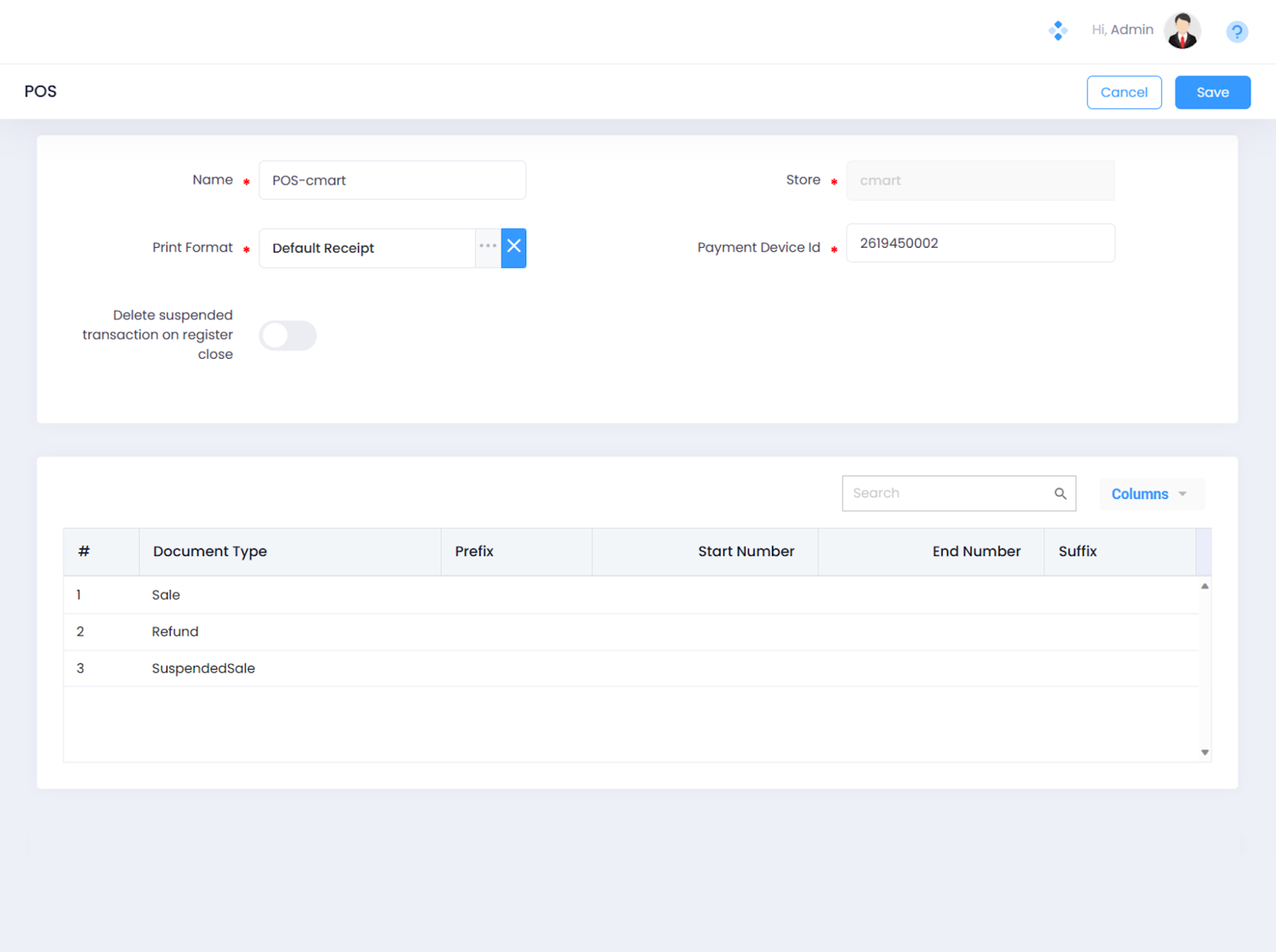 Navigate to the Home > Setup > Store Management > POS and click the edit symbol next to the POS Register that you want the Windcave Device to be mapped to.